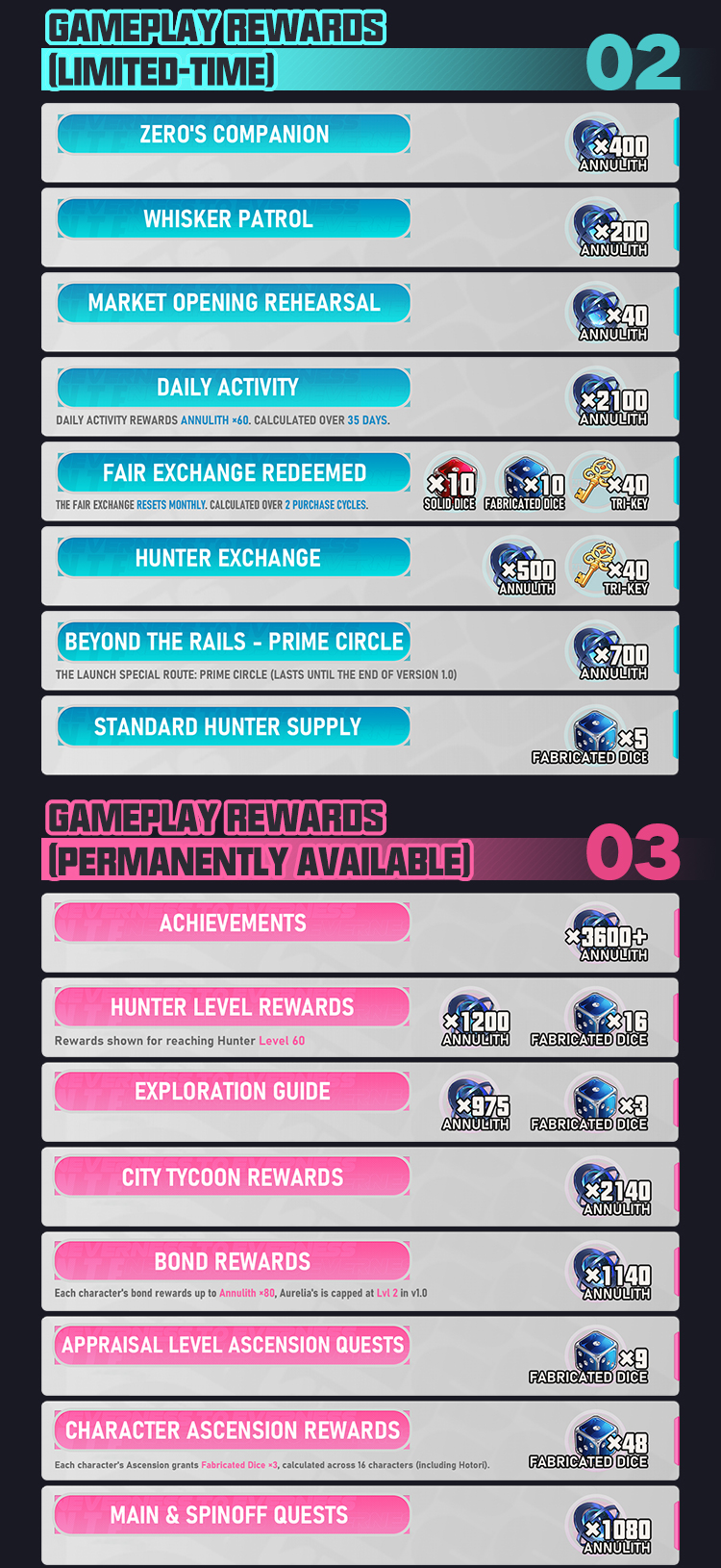 Version 1.0 gets you 120+ pulls just for showing up, and with earned gameplay rewards, you can rack up over 470 pulls total! You'll also score a free S-Class Character & S-Class Arcs.
