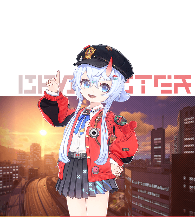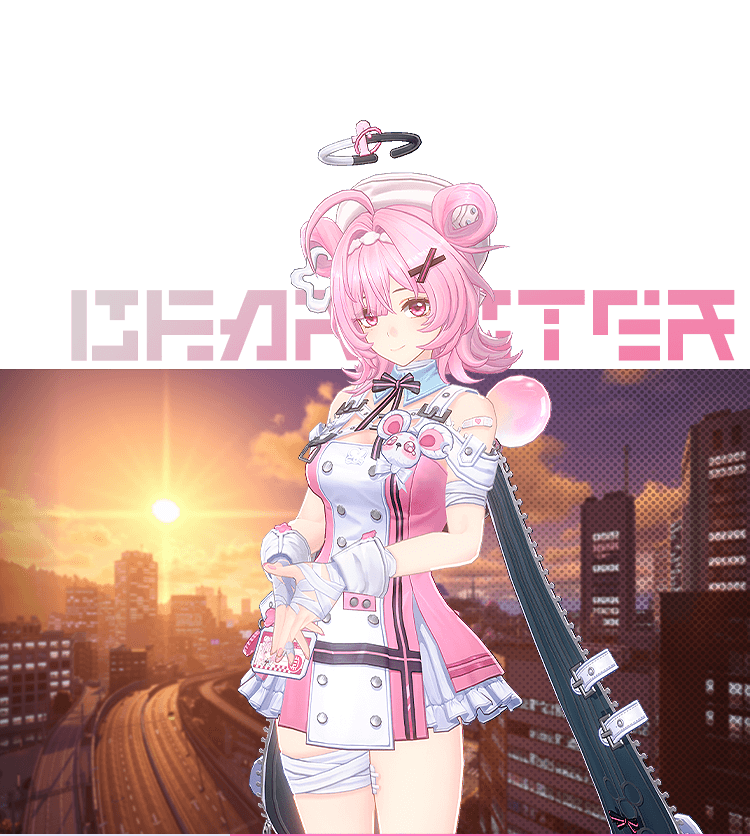 A rising star in the BAC's Containment Strike Unit 2 (CSU-2). Mint is a walking encyclopedia of everyone in the neighborhood, and the best local guide to cheap eats anywhere in the city! From the no-nonsense payroll lady in General Affairs, the stingy cafeteria guy who always skimps on the fries, and the stoic head chef at the Budoriya, to the hyperactive cashier at DSD Pop Toy Shop, Mint can chat the ear off of anyone... but only when she's not on duty, of course!
